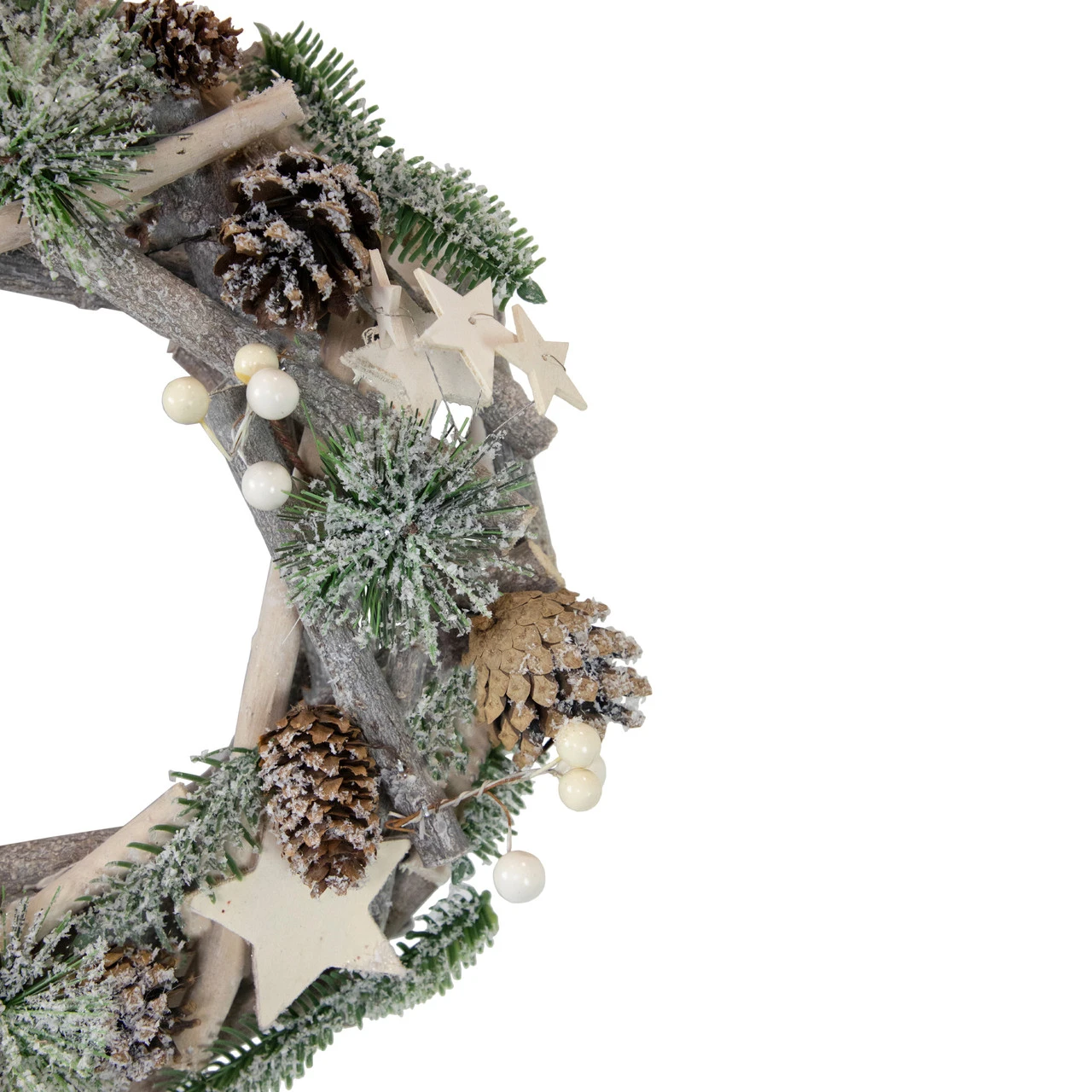 12″ Natural Branch With Stars And Berries Christmas Wreath