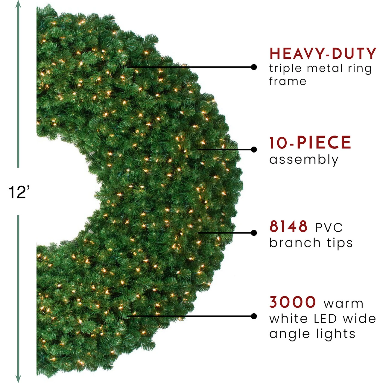 Dimensions: 144″ diameter (measured from outermost tip to outermost tip across the wreath)