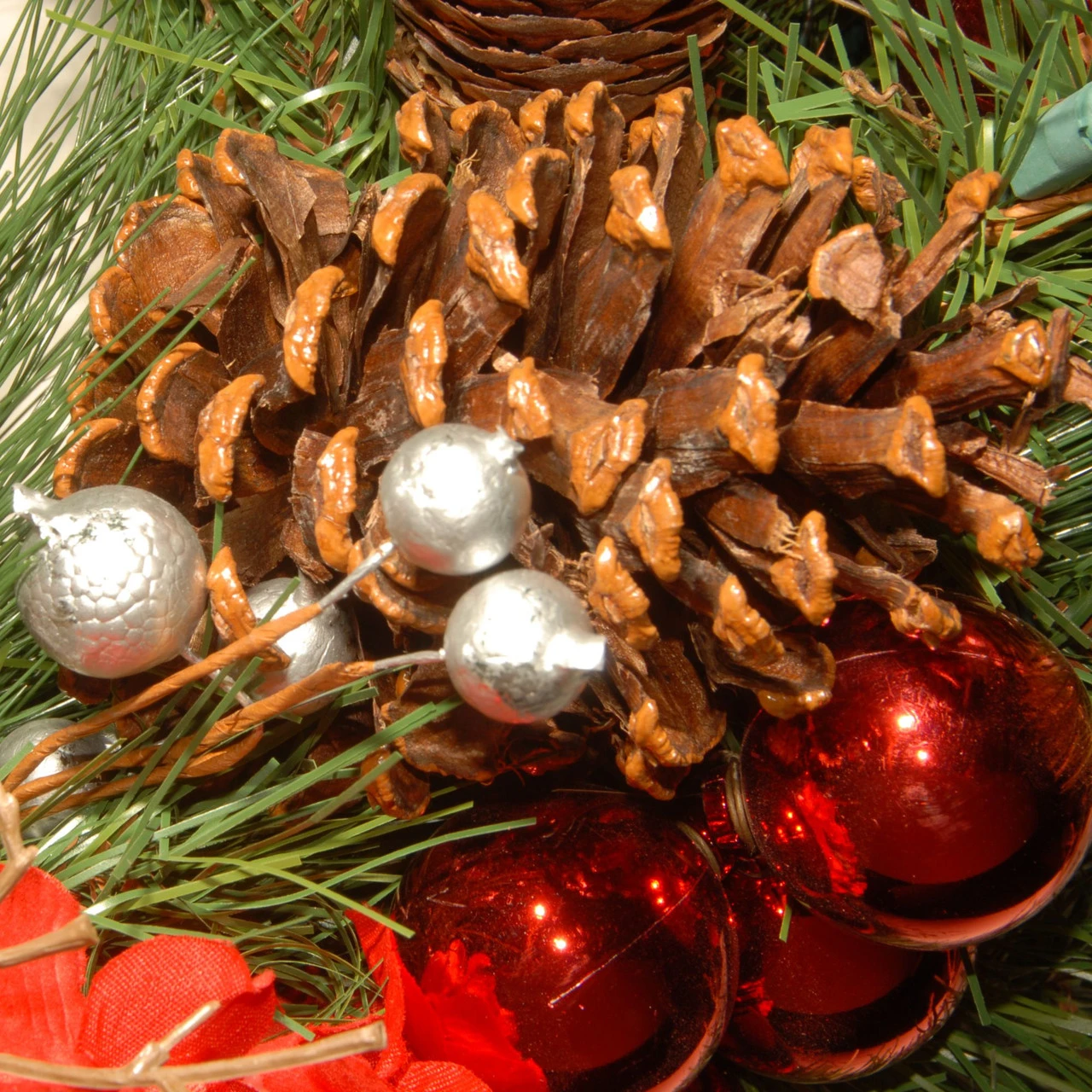 Material(s): PVC/metal/pine cones/glass bulbs/fabric