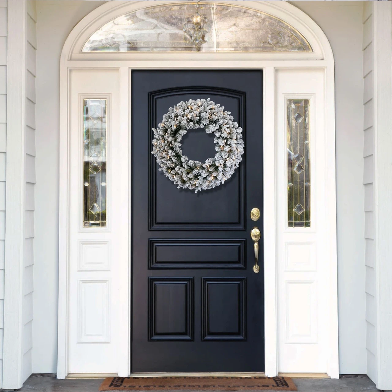 24″ Pre-Lit LED Snowy Iceland Fir Artificial Christmas Wreath – Warm White Lights