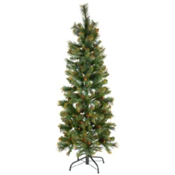 4.5′ Pre-Lit Yorkville Pine Pencil Artificial Christmas Tree – Multicolored Lights
