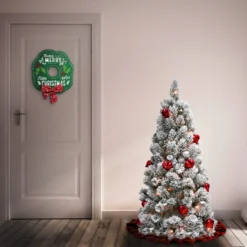 4.5′ Pre-Lit Pencil Green Flocked Artificial Christmas Tree, Unlit