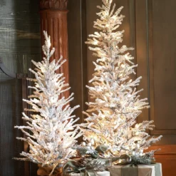 4.5′ Pre-Lit Slim Flocked Aspen Fir Artificial Christmas Tree, Clear Lights