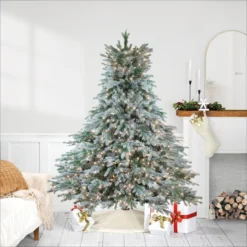 7.5′ Pre-Lit Medium Flocked Winfield Fir Artificial Christmas Tree – Warm White LED Lights