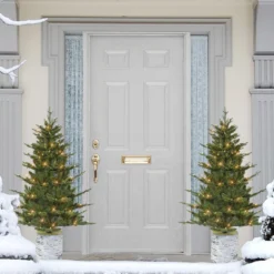 4.5′ Pre-Lit Potted Sierra Norway Spruce Slim Artificial Christmas Tree, Clear Lights