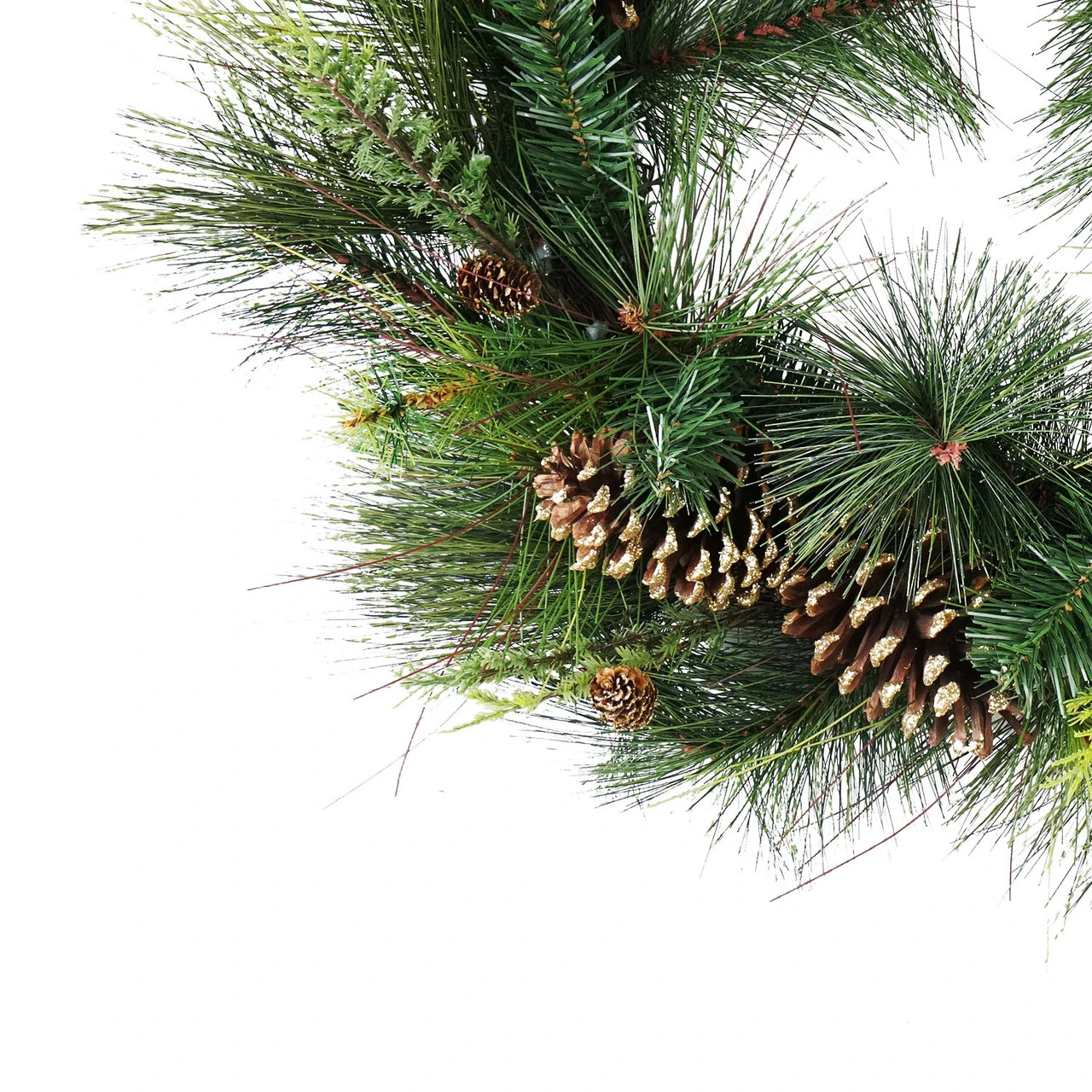 Dimensions: 8″ high x 30″ deep (measured from outermost tip/edge to outermost tip/edge across the wreath)