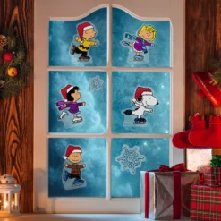 7-Piece Peanuts Characters Ice Skating Christmas Jelz Window Clings