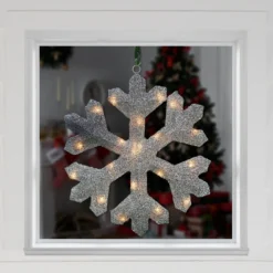 19″ Lighted Silver Glittered Berry Rattan Snowflake Christmas Window Decoration