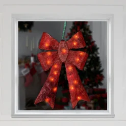 23″ Lighted Sparkling Red Sisal Double Bow Outdoor Christmas Decoration