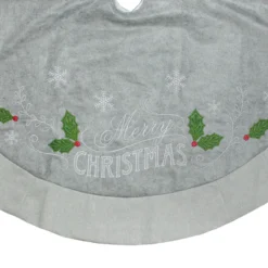 48″ Gray And Green ‘Merry CHRISTMAS’ Mottled Tree Skirt With Herringbone Bordered Trim