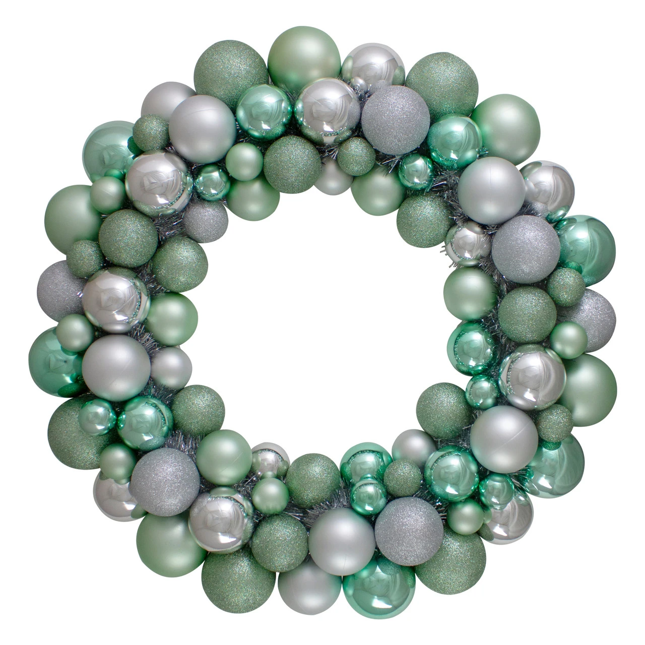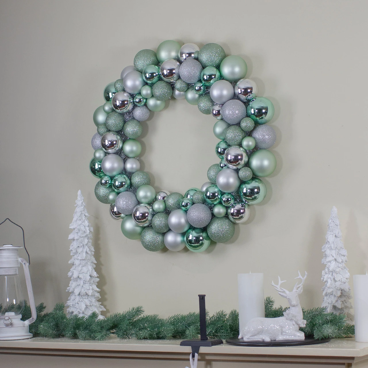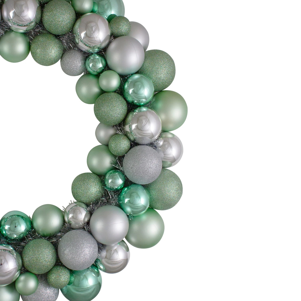 Silver and seafoam green, glitter and shiny shatterproof balls