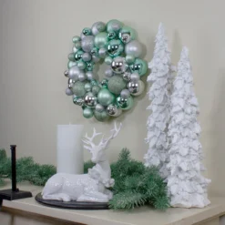 Silver And Seafoam Green 3-Finish Shatterproof Ball Christmas Wreath – 24-Inch, Unlit