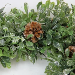 Square Boxwood And Berries Pine Cone Artificial Christmas Wreath 18-Inch, Unlit