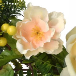 White Wooden Rose, Pine Cone And Berry Artificial Christmas Wreath, 10-Inch, Unlit