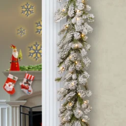 9′ X 14″ Pre-Lit White Alaskan Pine Artificial Christmas Garland, Warm White LED Lights