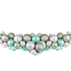 30″ Flocked Pine Artificial Christmas Teardrop Swag With Iridescent Ornaments – Unlit