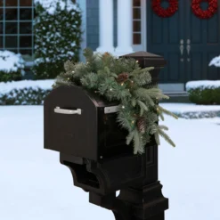 36″ Wintry Pine Battery Operated Artificial Christmas Mailbox Swag – Warm White LED Lights