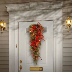 54″ Pre-Lit Deluxe Dorchester Pine Artificial Christmas Teardrop Swag, Clear Lights