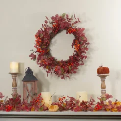 Red And Orange Fall Berry And Mini Pumpkin Artificial Thanksgiving Wreath – 20-Inch, Unlit
