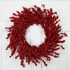 Red Hot 3-Finish Shatterproof Ball Christmas Wreath, 24-Inch