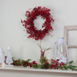 Red Pine Cone And Berry Artificial Christmas Wreath, 12-Inch, Unlit