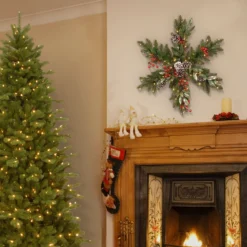 60” Pre-Lit Wintry Pine Artificial Christmas Wreath – Clear Lights
