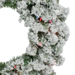 Pre-Lit Heavily Flocked Pine Artificial Christmas Wreath – 24-Inch, Multi-Color Lights