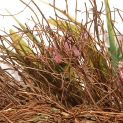 13″ White And Pink Wooden Floral Christmas Wreath With Pinecones