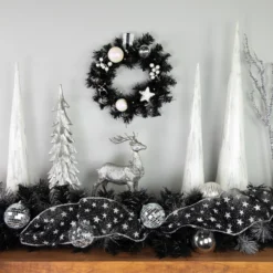 16″ Pre-Lit Decorated Black Pine Artificial Christmas Wreath, Cool White LED Lights