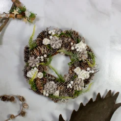 White Rose And Pine ConesArtificial Christmas Wreath, 13-Inch, Unlit