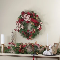 Bows And Berries Artificial Christmas Wreaths – 24-Inch, Unlit