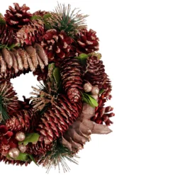 Dusty Rose And Red Pine Cones Glitter Artificial Christmas Wreath, 10-Inch, Unlit