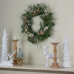 Pre-Lit Decorated Crestwood Spruce Artificial Christmas Wreath – 20-Inch, Clear Lights