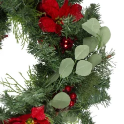 Poinsettia And Eucalyptus Artificial Christmas Wreath – 24-Inch, Unlit