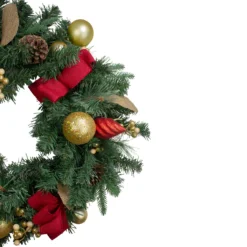 24″ Pre-Decorated Red And Gold Ornaments Artificial Christmas Wreath – Unlit
