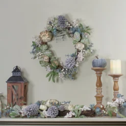 Neutral Colored Pumpkin And Pine Cones Fall Harvest Wreath – 18-Inch, Unlit